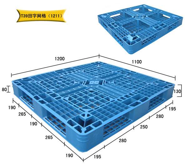 產(chǎn)品型號: HD-1211TW2產(chǎn)品貨號: T39 產(chǎn)品外尺寸: 1200×1100×130 產(chǎn)品內(nèi)尺寸: 產(chǎn)品結(jié)構(gòu): 田字網(wǎng)格 產(chǎn)品內(nèi)容量(L): 承重量(T): 動載:1T 靜載:4T 貨架0.4T 此款塑料托盤適合平地墊倉,在貨架上或碼垛使用;