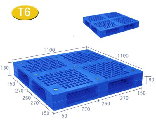 產品型號: HD-1111SW2 產品貨號: T6 產品外尺寸: 1100×1100×160mm 產品內尺寸: 產品結構: 雙面焊接網格面重型 產品內容量(L): 承重量(T): 動載1.5噸,靜載6噸,貨架1噸 產品認可標準: ISO9001:2000質量體系認證 此款塑料托盤內含5個螺栓,增加了托盤的強度.